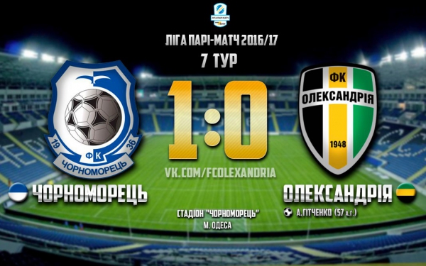 Вперше в своїй історії ФК «Олександрія» проводить матч під знаком жіночої Феміди. Катерина Монзуль – український футбольний арбітр, яка попала в елітну категорію арбітрів ФІФА. Вона обслуговувала фінали чемпіонатів світу та Ліги Чемпіонів серед жінок. Міжнародна федерація футбольної історії і статистики визнала Катерину Монзуль кращим жінкою арбітром 2015 року. «Чорноморець» вже відчув жіночу елегантність та безапеляційність Катерини в минулому чемпіонаті коли зіграв внічию (1:1) з «Волинню». Між собою суперники в чемпіонатах України зіграли чотирнадцять матчів: чотири перемоги «Чорноморця», сім перемог «Олександрії», три нічиїх. Олександрійці провели у ворота одеситів 19, пропустили 16 м`ячів. Остання зустріч між командами відбулася 19.03.2016р. в рамках 25 чемпіонату в Одесі, тоді вікторію святкували наші земляки 2:1. В складі нашої команди відзначилися А. Полярус та Д. Леонов, в одеситів голом потішив своїх вболівальників Є. Мартиненко. Наразі в турнірній таблиці команди знаходяться поряд, посідаючи відповідно п`яте та шосте місця. Перша п`ятнадцятихвилинка пройшла за ігрової та територіальної переваги олександрійців, які діяли достатньо широко, активно включаючи флангові атаки. «Чорноморець» віддавши ініціативу сподівався на рідкі але гострі контратаки та ця тенденція не принесла успіху жодній з команд. З середини першого тайму гра перемістилась в центр поля де гравці обох команд сперечались хто сильніший саме на цій ділянці. В решті решт олександрійці використали стрімкий вихід Сергія Старенького, який випередив захисників та воротаря і послав м`яч в сітку воріт, та за мить перед цим асистент арбітра Наталія Рачинська зафіксувала мінімальний офсайд у півзахисника «Олександрії». На перерву команди пішли практично за рівними показниками в усіх тактико-технічних та статистичних даних. В грі суперників було багато сумбуру і нічого цікавого футболісти в першій частині матчу не створили. А початок другого тайму розпочався стрімкою атакою олександрійців та завершальним ударом Артема Чорнія, який отримав вивірену передачу від плеймейкера «Олександрії» Василя Грицука. На жаль м`яч в лічених сантиметрах пролетів поряд зі стійкою. Значно жвавіше проходив другий тайм, спочатку олександрійці отримали право на пробиття штрафного та Василь Грицук пробив вище воріт. Не забарилась відповідь від одеситів і вже практично в порожні ворота головою не влучає Владислав Калітвінцев після передачі Микити Татаркова. На повну катушку почала працювати і Катерина Монзуль, яка за 10 хвилин другого тайму показала три гірчичника. Чергова атака одеситів завершилась голом, після відмінно проведеною багатоходівки, Микита Татарков зробив простріл в центр воротарського майданчика гостей і Андрій Гітченко, намагаючись ліквідувати загрозу, зрізав м`яч у власні ворота. Окрилені успіхом футболісти «Чорноморця» продовжували тиск на ворота Андрія Новака, а олександрійці на жаль не змогли створити нічого путнього на половині господарів поля. До кінця матчу наші земляки залишались пасивними в атаці, коли треба було за рахунок характеру, чим завжди вирізнялась команда, йти вперед і ламати хід поєдинку. Господарі вміло вигравали час подовгу розігруючи стандарти та постійно здійснюючи тиск на ворота Андрія Новака. Ми повністю віддали ініціативу, за щ